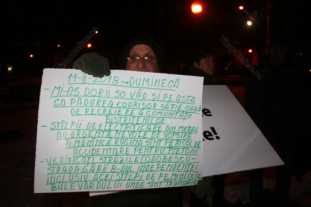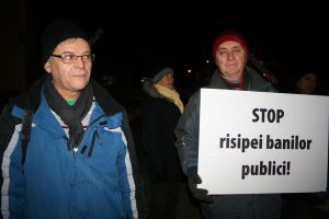 Bistriţenii nemulţumiţi de cum sunt cheltuiţi banii publici ai oraşului au protestat duminică seara în Piaţa Centrală. Oamenii, al căror număr s-a apropiat de 65, au afişat pancarte pe care au scris: “Stop risipei banilor publici”, “Stop proiectelor fanteziste!”, “Transparenţă”, “Servicii publice de calitate”, “Piste de biciclete şi parcări”, “Administraţie pentru cetăţeni”.