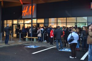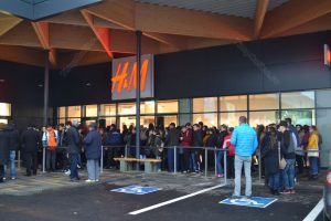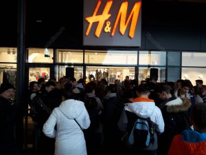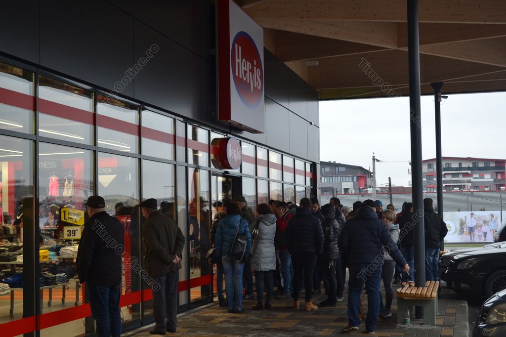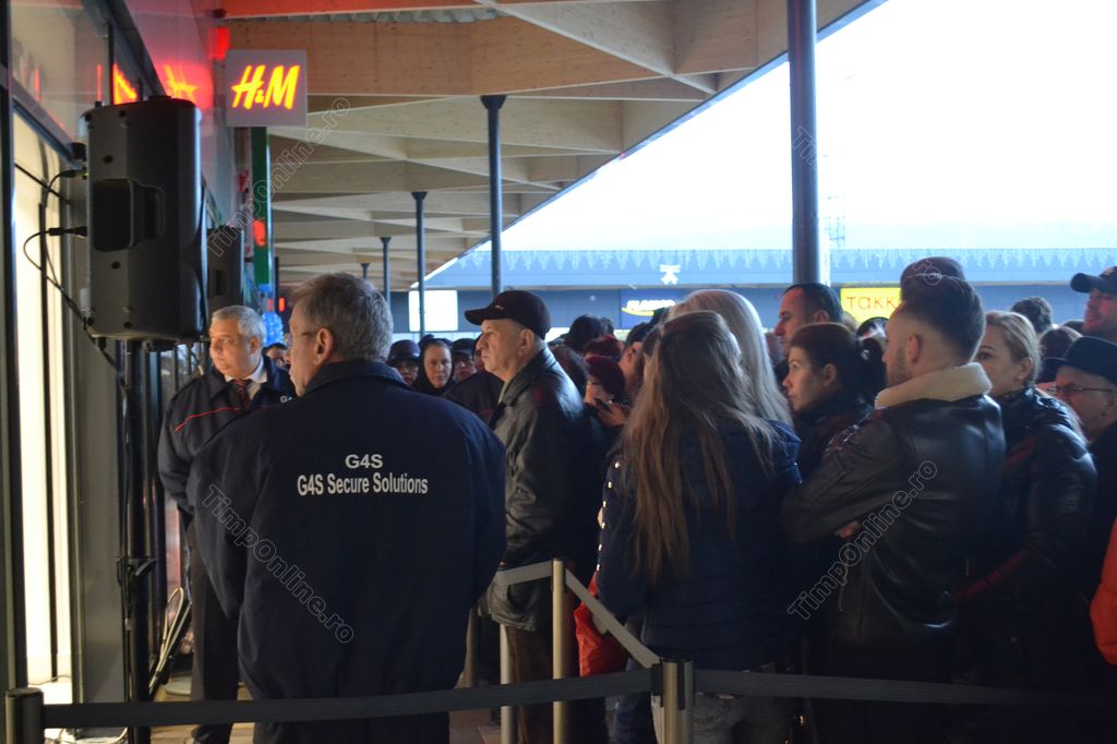 Încă de la ora 7.00, oamenii s-au aşezat la coadă la H&M care a oferit carduri de cumpărături în valoare de 50 de lei și 20% reducere la achizițiile la preț întreg mai mari de 100 de lei, alte persoane aşteptând în faţa magazinului Hervis, care a oferit căciuli gratis pentru primii 400 de clienţi care achiziționează produse de minim 50 de lei.