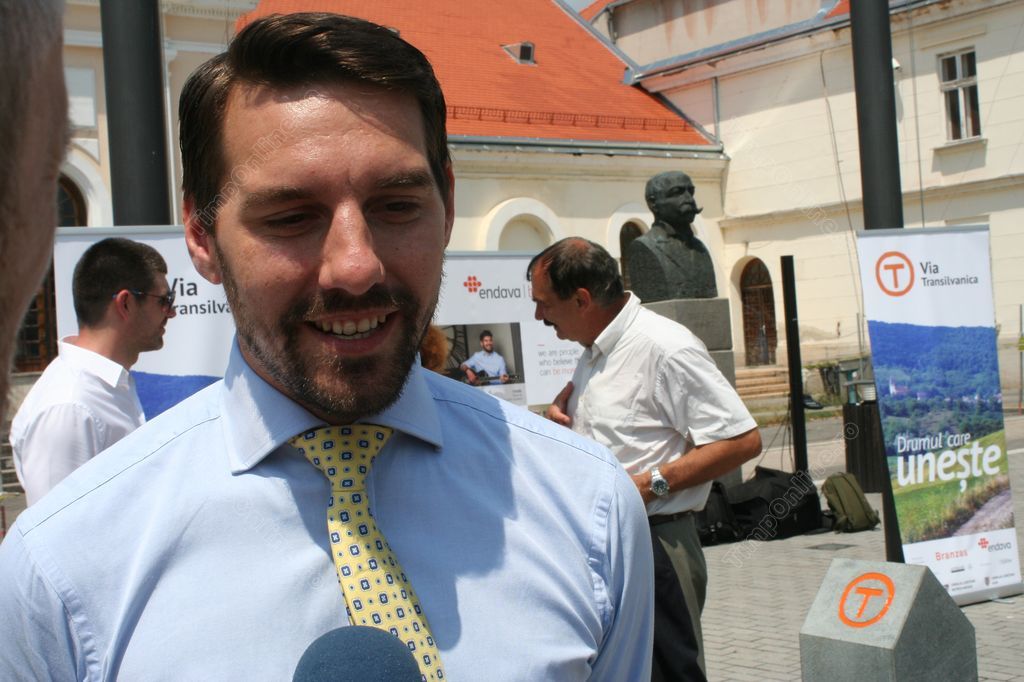 Toma Coconea – alpinist: “Sunt foarte onorat să fiu ambasador al acestui proiect. Eu, de 20 de ani, particip la competiţii în Alpi, în Pirinei şi văd un pas în faţă. Trebuia să se întâmple asta şi la noi. Avem o ţară minunată şi vă promit să fac cât mai multe filmuleţe din aer să împărtăşesc cu dumneavoastră cât mai multe pe site-ul www.viatransilvanica.com, care va ajuta foarte mult românii şi străinii care ne vor vizita ţara”.