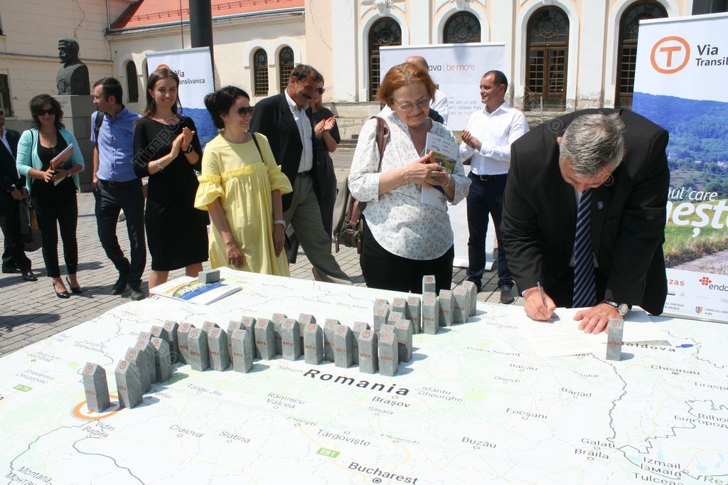 Ca să poată face toate aceste lucruri, organizaţia s-a întâlnit, marţi, la Alba Iulia cu preşedinţii Consiliilor Judeţene Alba şi Bistriţa-Năsăud şi cu reprezentanţi ai structurilor similare din celelalte judeţe ce vor fi traversate de drum, în total 10, care au semnat şi un Memorandum de colaborare. Apoi, în prezenţa ambasadorilor Via Transilvanica şi a partenerilor, în Piaţa Cetăţii, a fost dat startul proiectului.