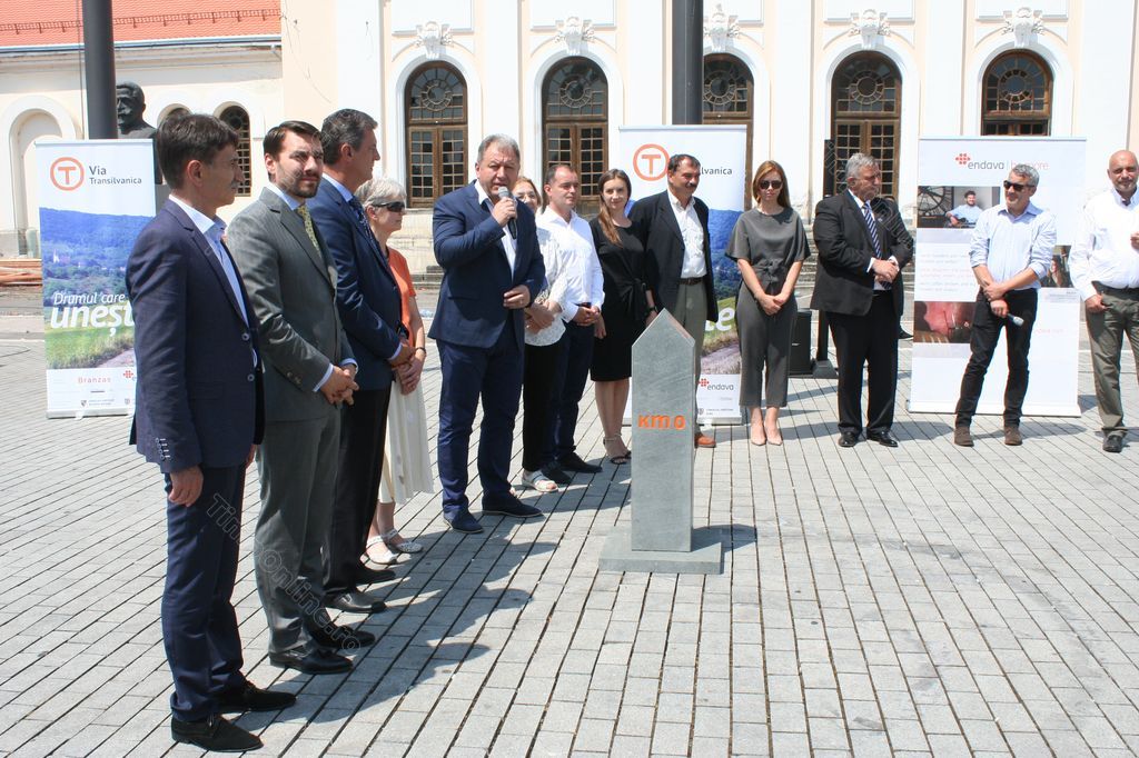 Borna kilometrului zero al “Via Transilvanica”, un drum de 950 de kilometri ”care unește” și va străbate ţara de la Drobeta Turnu Severin până la Putna, a fost pusă simbolic în Piaţa Cetăţii din Alba Iulia, de Asociaţia Tăşuleasa Social, iniţiatoarea acestui proiect, având alături câțiva dintre promotorii și susținătorii lui: Nicolae de Roumanie – nepotul Regelui Mihai I, Mircea Miclea – fostul ministru al Educaţiei, Mihaela Miroiu, Dragoş Bucurenci, ambasadorii proiectului Tibi Ușeriu şi Toma Coconea.