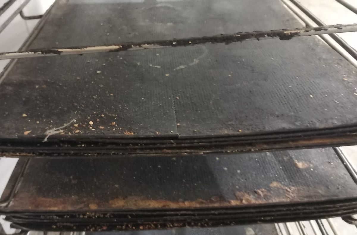 - neigienizat malaxorul din spațiul de producție. Acesta avea depuneri de făină și resturi de aluat întărit, tăvile utilizate aveau porțiuni cu pete de murdărie, arsură și resturi alimentare necurățate la colțuri;