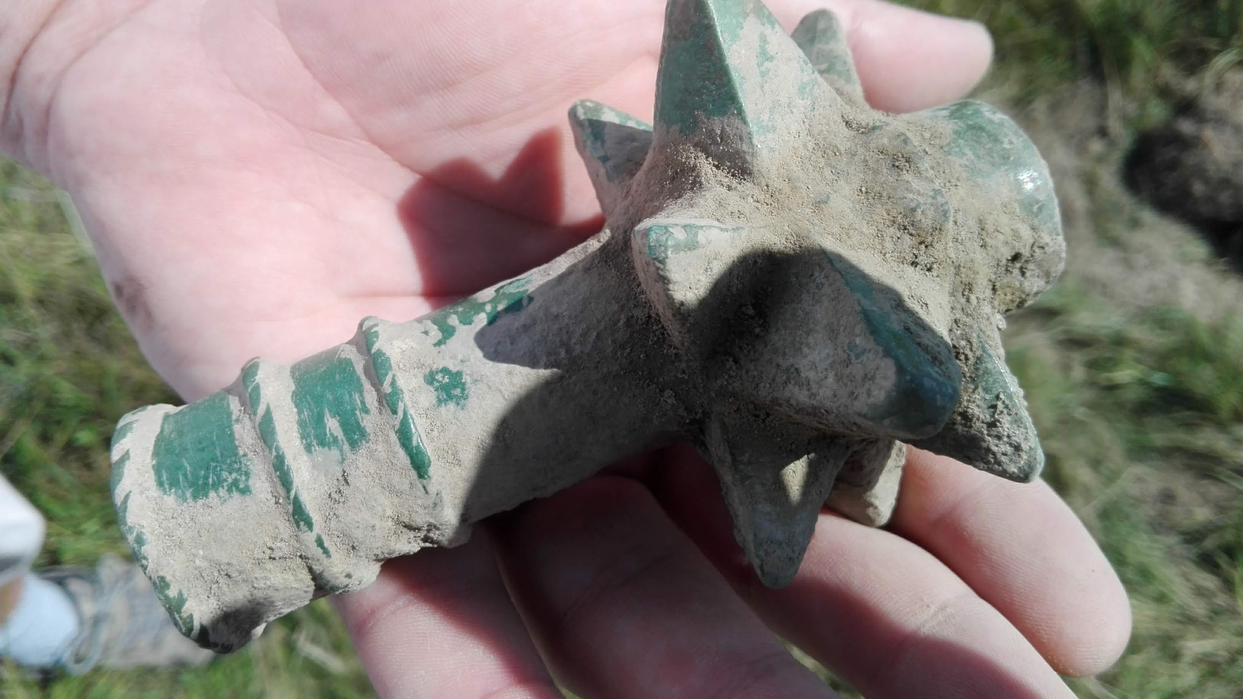 ”Astăzi am avut norocul să găsesc un buzdugan de bronz foarte frumos, întreg. În momentul în care am realizat ce este am încetat săpăturile și am urmat procedurile stabilite. El a fost extras în condiții de siguranță și după proceduri arheologice și este în curs de predare. Presupun că acest buzdugan ar fi până în perioadă secolului XIV, similar cu cel găsit în 2017 la aproximativ 3-4 km”, scrie pe holland.ro.