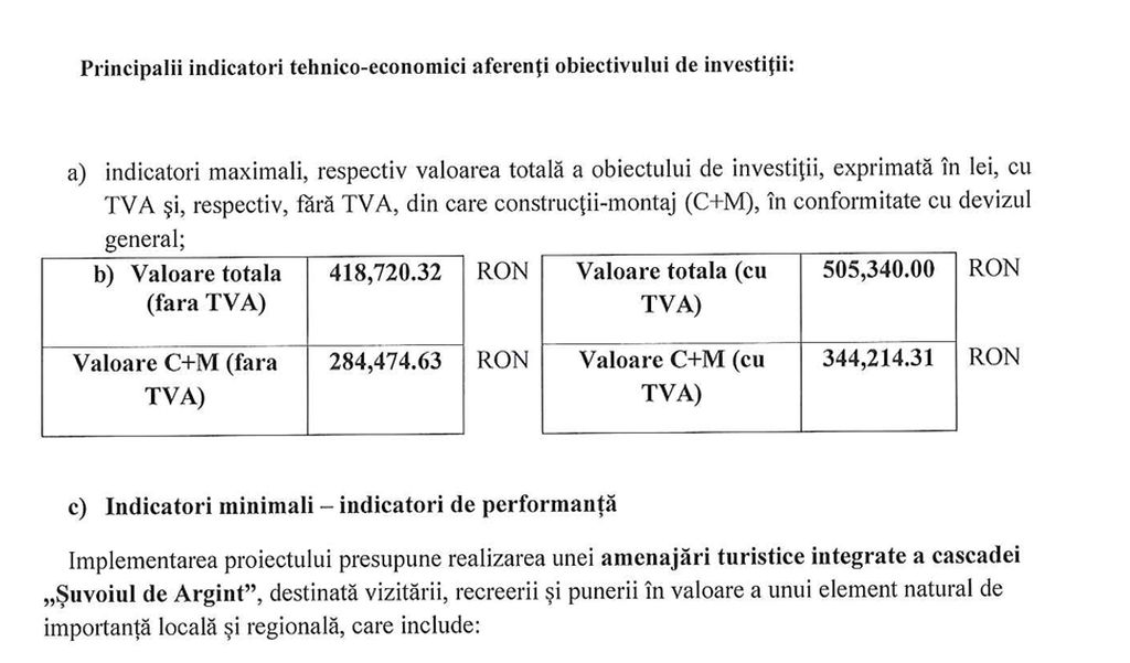 Investiția include lucrări hidrotehnice de punere în valoare a cascadei (praguri, bazine, dirijare controlată a apei), amenajarea de trasee pietonale sigure, pasarele și poduri de traversare, platforme de belvedere și observare, zone de odihnă și informare, iluminat ambiental și arhitectural, precum și sisteme de siguranță și supraveghere. De asemenea, vor fi realizate dotări dedicate gestionării fluxului de vizitatori.