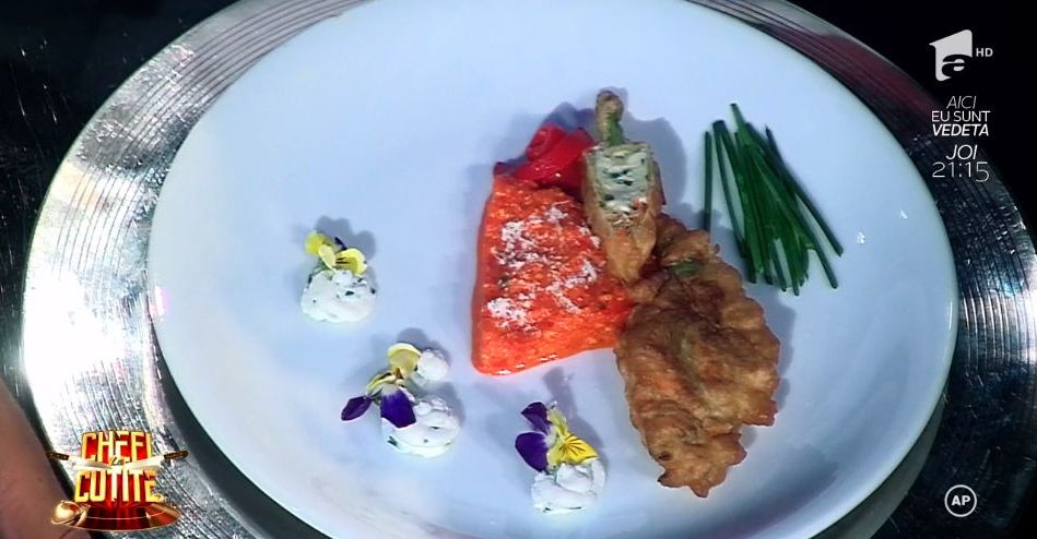 (FOTO-VIDEO) Încă o bârgăuancă s-a prezentat în concursul culinar “Chefi la cuţite” unde a gătit un preparat special, mai puţin întâlnit prin zona noastră: floare de dovlecel umplută cu ricotta, la care a adăugat sos de ardei capia copţi cu seminţe de pin. Preparatul Elenei Rus, de 41 de ani, din Tiha Bârgăului arăta, aşa cum şi-a dorit, ca un câmp cu flori.