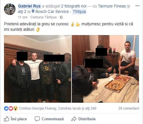(FOTO) Gabriel Rus, şoferul din Tîrlişua, arestat la domiciliu după ce a produs un accident la Coldău în urma căruia un taximetrist şi-a pierdut viaţa, a sărbătorit cu prietenii întoarcerea acasă, ce-i drept în arest la domiciliu. El a postat pe Facebook două fotografii în care apare alături de alţi trei tineri, în jurul unei mese pe care se află şi pizza adusă la pachet.