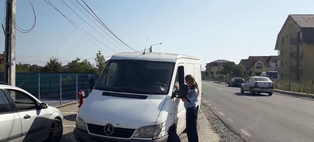 Cum microbuzul venea din sens opus, mașina a fost avariată în partea din față stânga.