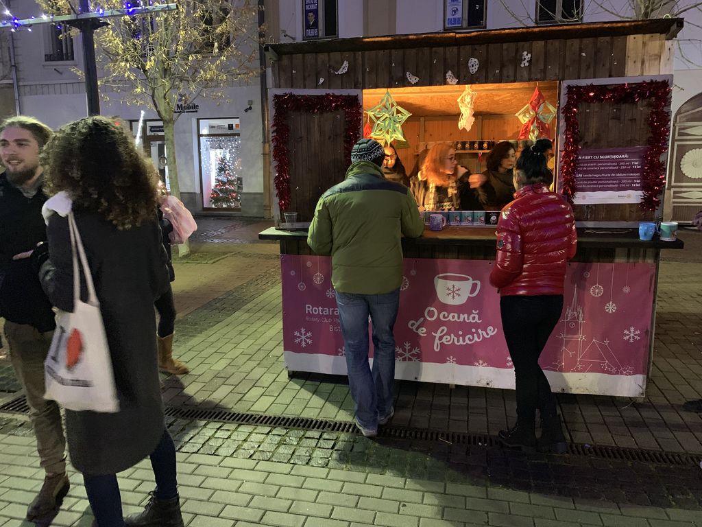 “O cană de fericire” îi aşteaptă pe cei care trec pe pietonalul Liviu Rebreanu unde echipa Rotaract Club Bistrița, alături de Interact Bistrița-Nosa și Rotary Club Bistrița, vă invită să vă încălziți mâinile cu o cană de vin fiert sau ceai fierbinte și sufletul cu o faptă bună!
