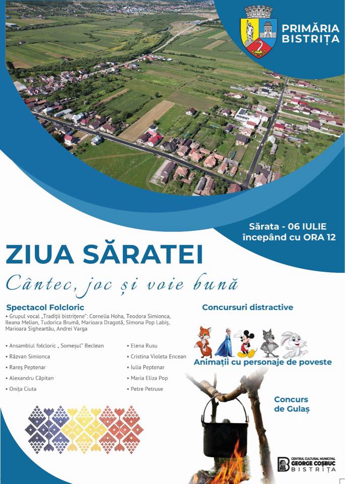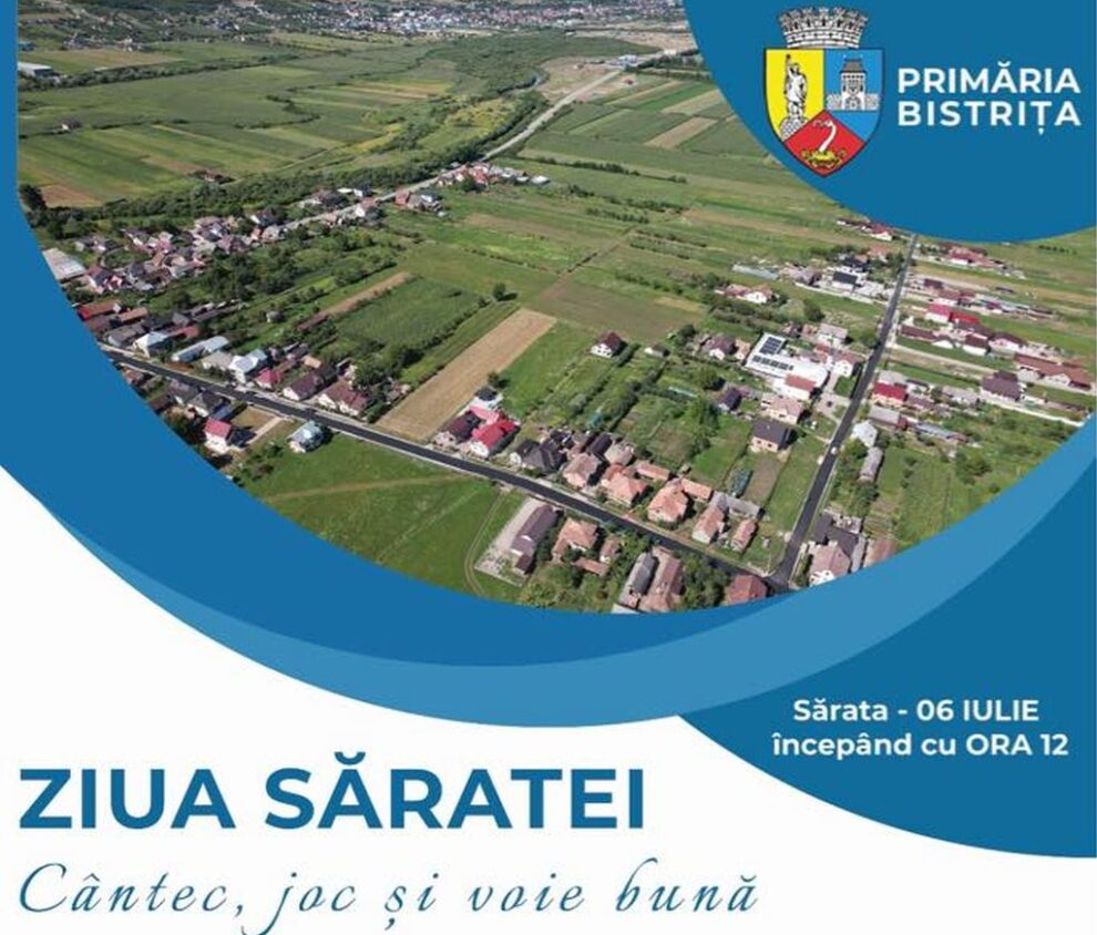 Primăria Bistrița va organiza, duminică, 6 iulie, începând cu ora 12:00, o nouă ediție a Zilelor Săratei, eveniment în care participanții vor avea parte de voie bună, muzică și tradiții în comunitate.