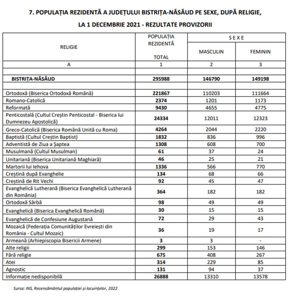 Alte date privind religia locuitorilor județului găsiți în tabelele de mai jos: