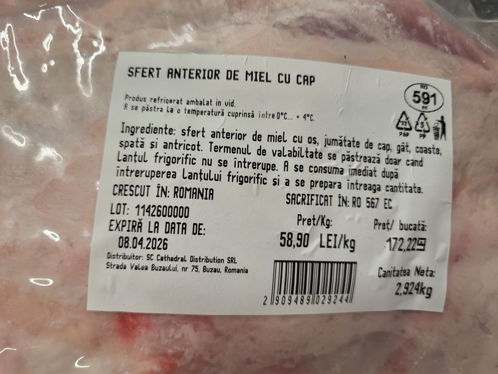 La Carrefour, care s-a aprovizionat cu miel din Bucovina, sfertul posterior costă 61,90 lei/kg, iar sfertul anterior cu cap 58,90 de lei/kg. Carnea de miel nu poate fi cumpărată decât la bucată, așa încât cine vrea să cumpere sfert posterior trebuie să scoată din buzunar peste 300 de lei pentru un picior, iar cine vrea să facă și ciorbă va plăti circa 200 de lei pe o bucată de carne.