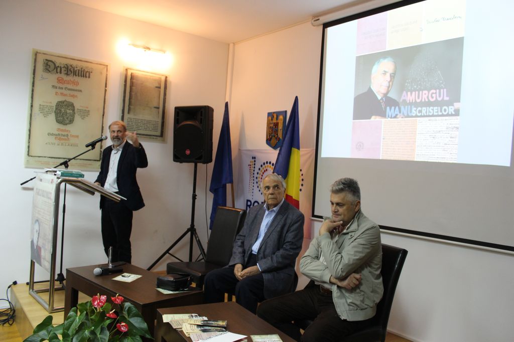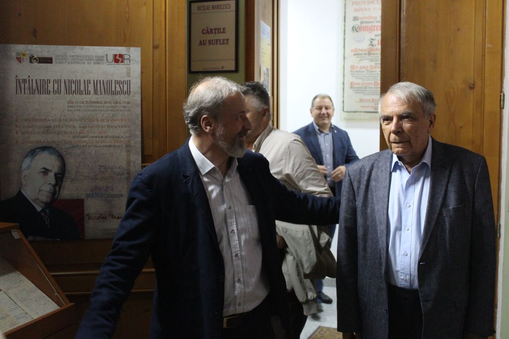 ”Bine ați revenit acasă, domnule Nicolae Manolescu, pentru că acolo unde sunt manuscrisele Manolescu acolo este și casa Manolescu. Am încercat după puterile noastre să facem o casă Manolescu. Nu de mult, domnul profesor Manolescu s-a hotărât să ne dăruiască toate manuscrisele. Este, după părerea mea, cel mai mare dar cultural pe care l-a primit acest județ, peste 14.000 de file de manuscris, pe lângă care ne-a mai dăruit și o parte din caietele Eugen Lovinescu. Cărțile au suflet, dar eu cred că manuscrisele au un suflet și mai bun pentru că sunt cele care fondează și construiesc cartea”, a afirmat directorul Bibliotecii Județene, Ioan Pintea.