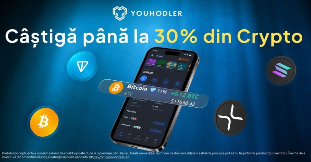 Risk warning : Prețul unor crypto active poate fi supus unei volatilități ridicate și poate duce la o pierdere parțială sau totală a investiției dumneavoastră. Investițiile în astfel de produse pot să nu fie potrivite pentru toate tipurile de investitori. Înainte de a investi, vă recomandăm să citiți cu atenție riscurile asociate. Pentru detalii suplimentare, consultați Termenii și condițiile disponibile pe website-ul oficial. https://help.youhodler.com/en/articles/8948322-risk-associated-to-cryptoassets-investment.
