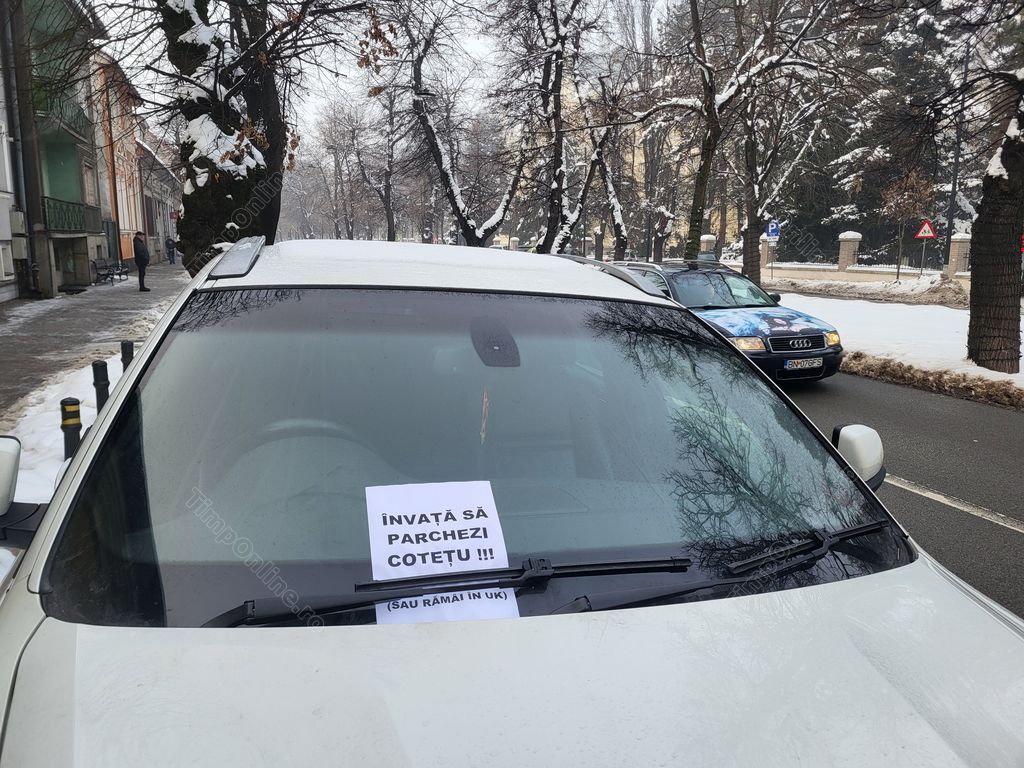 Criza locurilor de parcare, amplificată de faptul că multe nu sunt curățate de zăpadă, iar locurile s-au împuținat, îi determină pe unii șoferi care nu au unde să își lase mașinile, să recurgă la tot felul de metode să-i convingă pe alții să fie responsabil, gen mesajele lăsate pe parbrize.