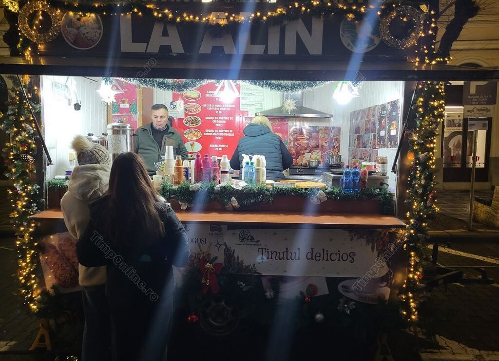 Comercianții care au închiriat căsuțe pe pietonal le-au decorat frumos, de sărbătoare.