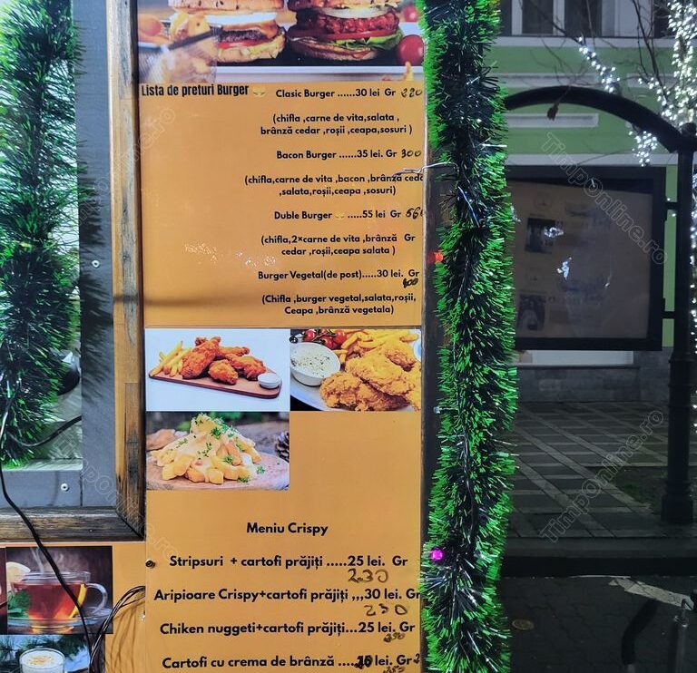 - 30 de lei – shaorma mare (700 de grame), burger, creveți în sos de vin, burger vegetal
