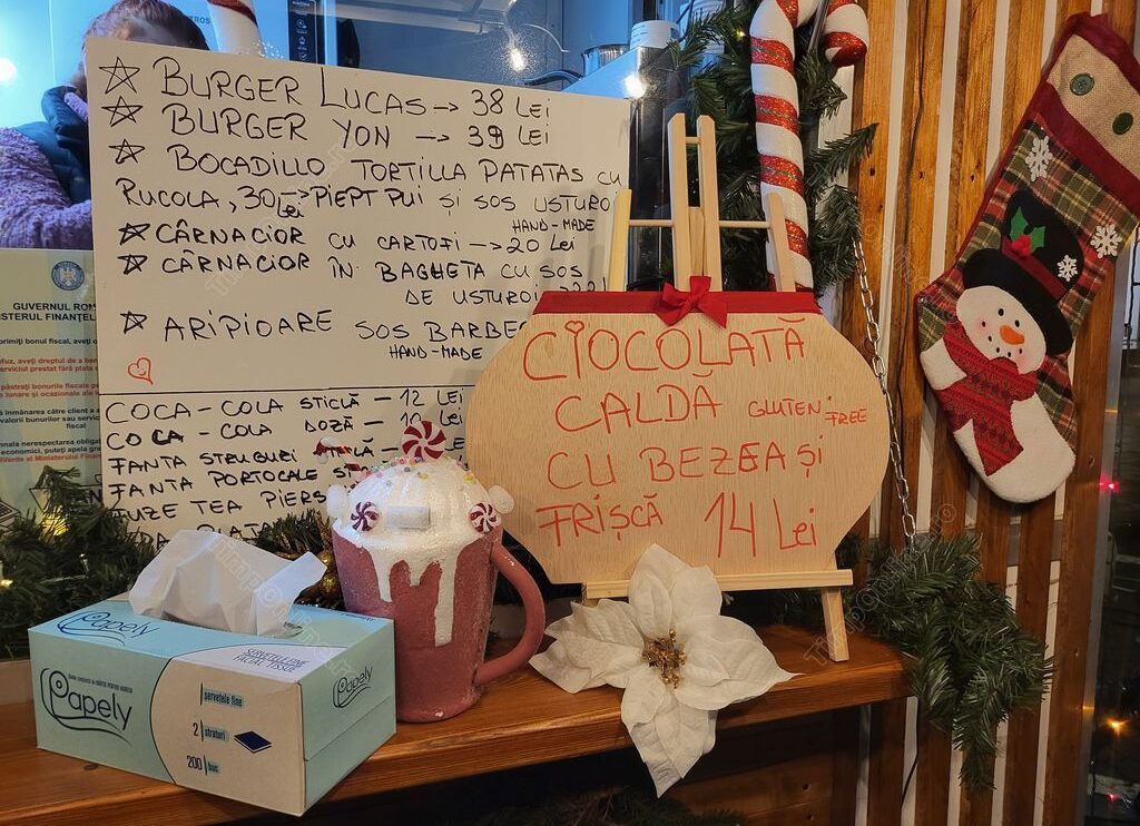 - între 12 și 15 lei – 250 ml vin fiert sau 300 ml cidru de mere cald, 300 de ml ciocolată caldă cu topping de frișcă (în unele locuri 14 lei)