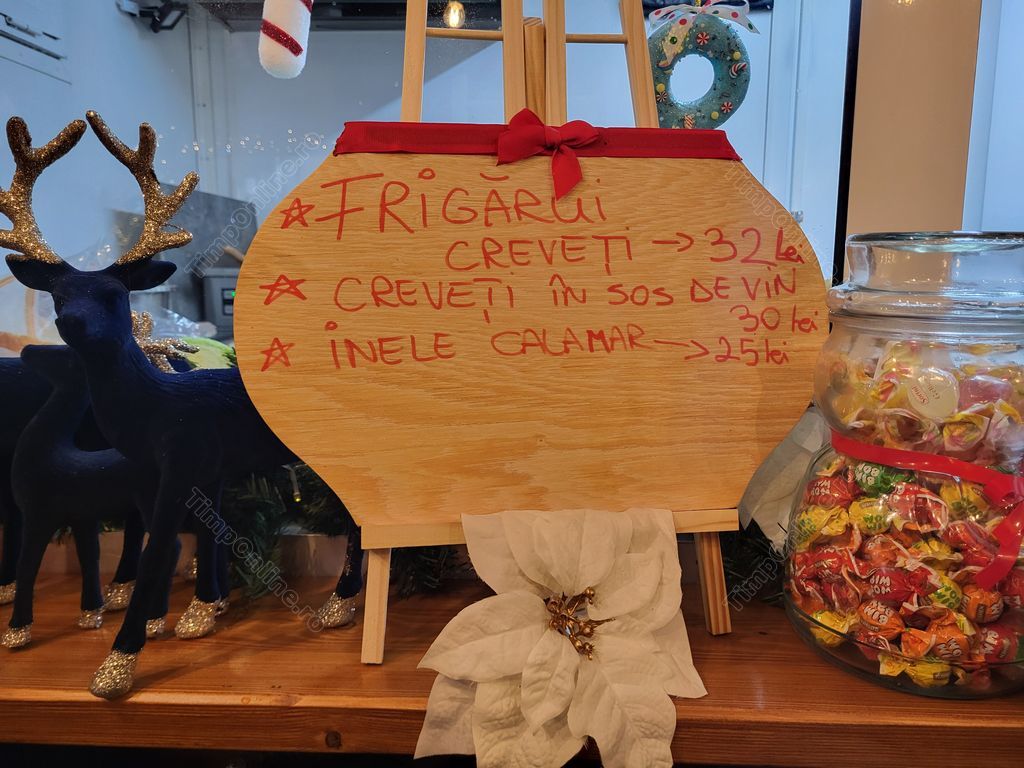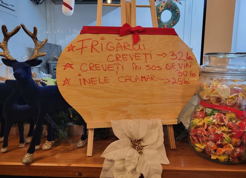 Ce bine ca se poate cumpara shaorma (mare si mica) si frigarui creveti. Sunt niste produse foarte traditionale, potrivite pentru un Targ de Craciun… in Caracalul Nordului…