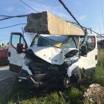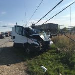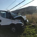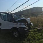 De dimineață, o autoutilitară a rupt un stâlp de electricitate pe centura Bistriței.