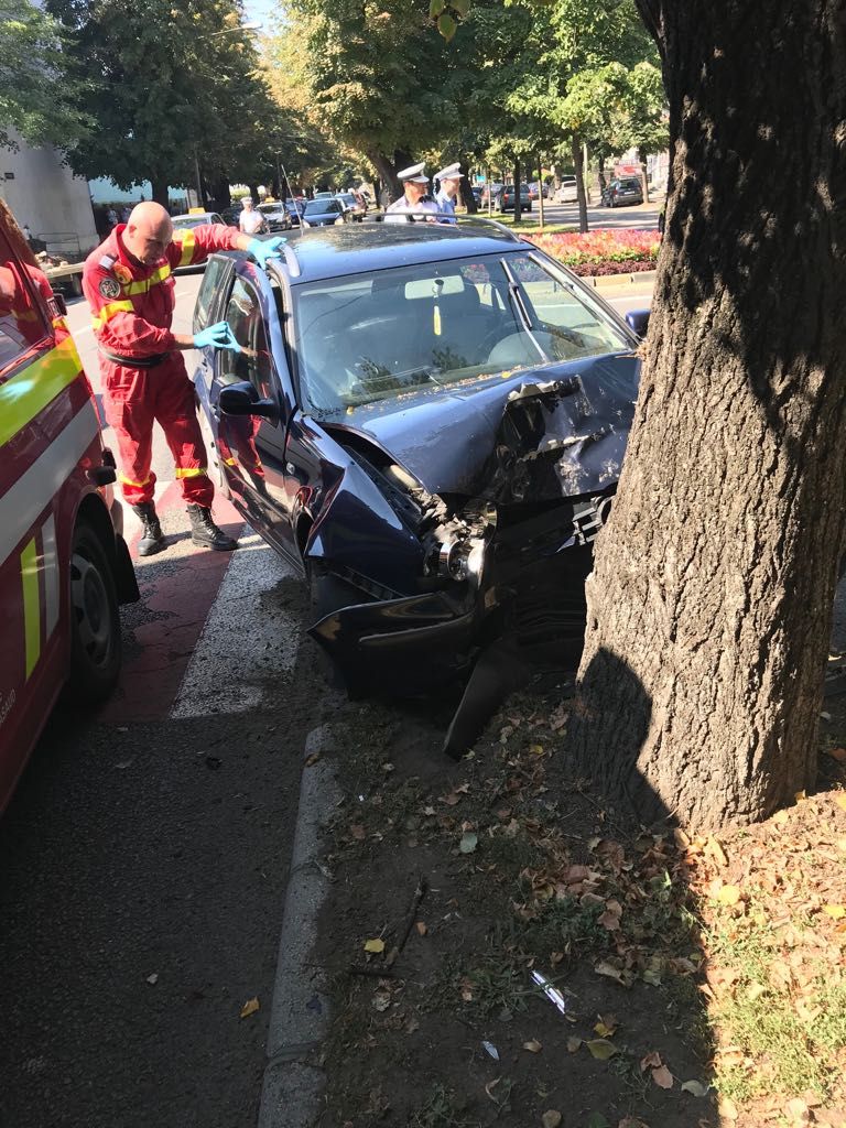 Marţi, pe Bulevardul Republicii o maşină s-a proptit într-un copac. Şoferiţa era singură în maşină, dar a scăpat cu răni uşoare şi cu o sperietură.