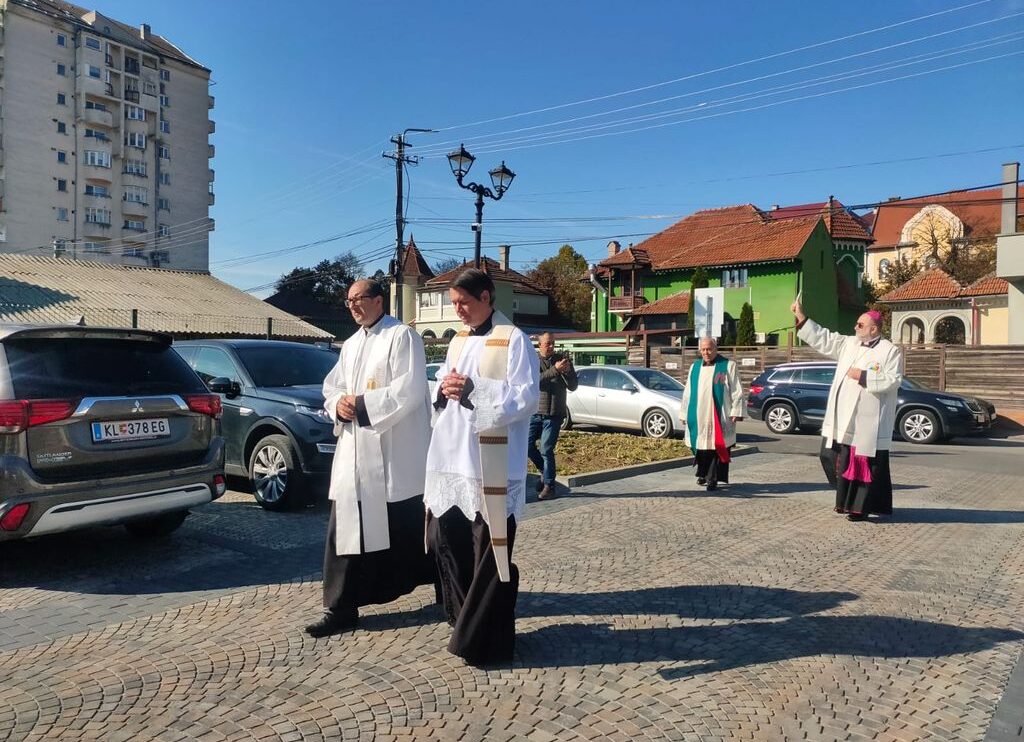 Ceremonie la parcarea de pe str. Lupeni, în prezența Arhiepiscopului Romano-Catolic