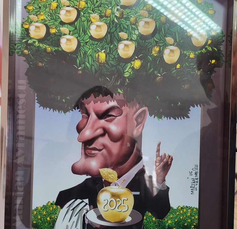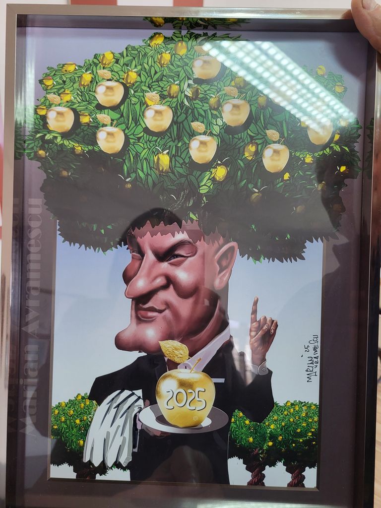 Președintele juriului de la Concursul internațional de grafică satirică, Marian Avramescu, i-a pregătit primarului Gabriel Lazany o caricatură.