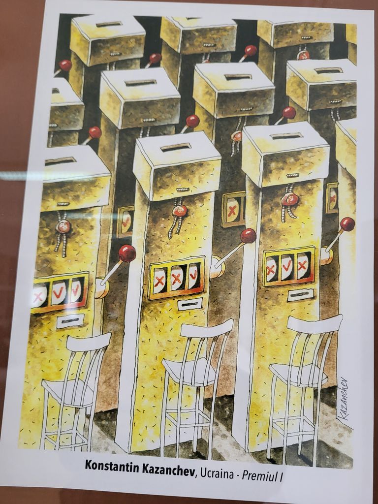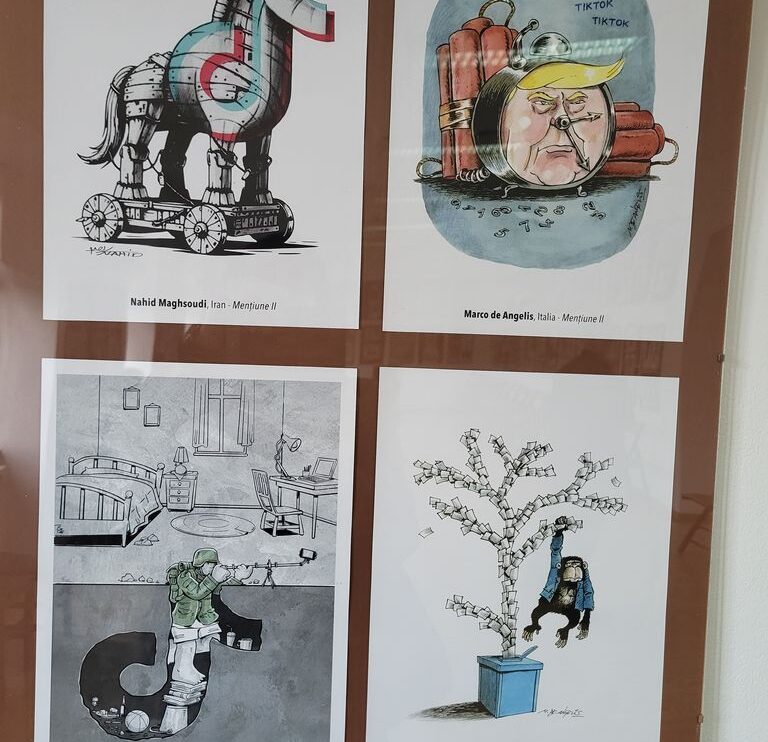 În total, 109 caricaturiști din 38 de țări au participat anul acesta la secțiunea de grafică satirică, subsecțiunea desen umoristic. Tema propusă de organizatori a fost ”Războiul TikTok/Alegeri”. Premiul I a plecat în Ucraina, premiul al doilea în China, premiul al treilea în Spania și Siria. S-au mai acordat și șapte mențiuni.