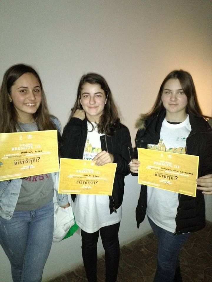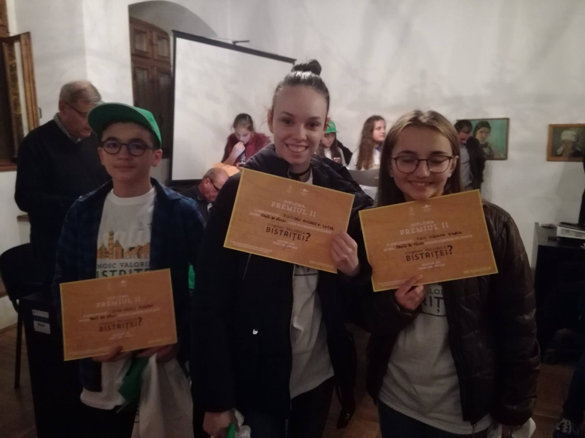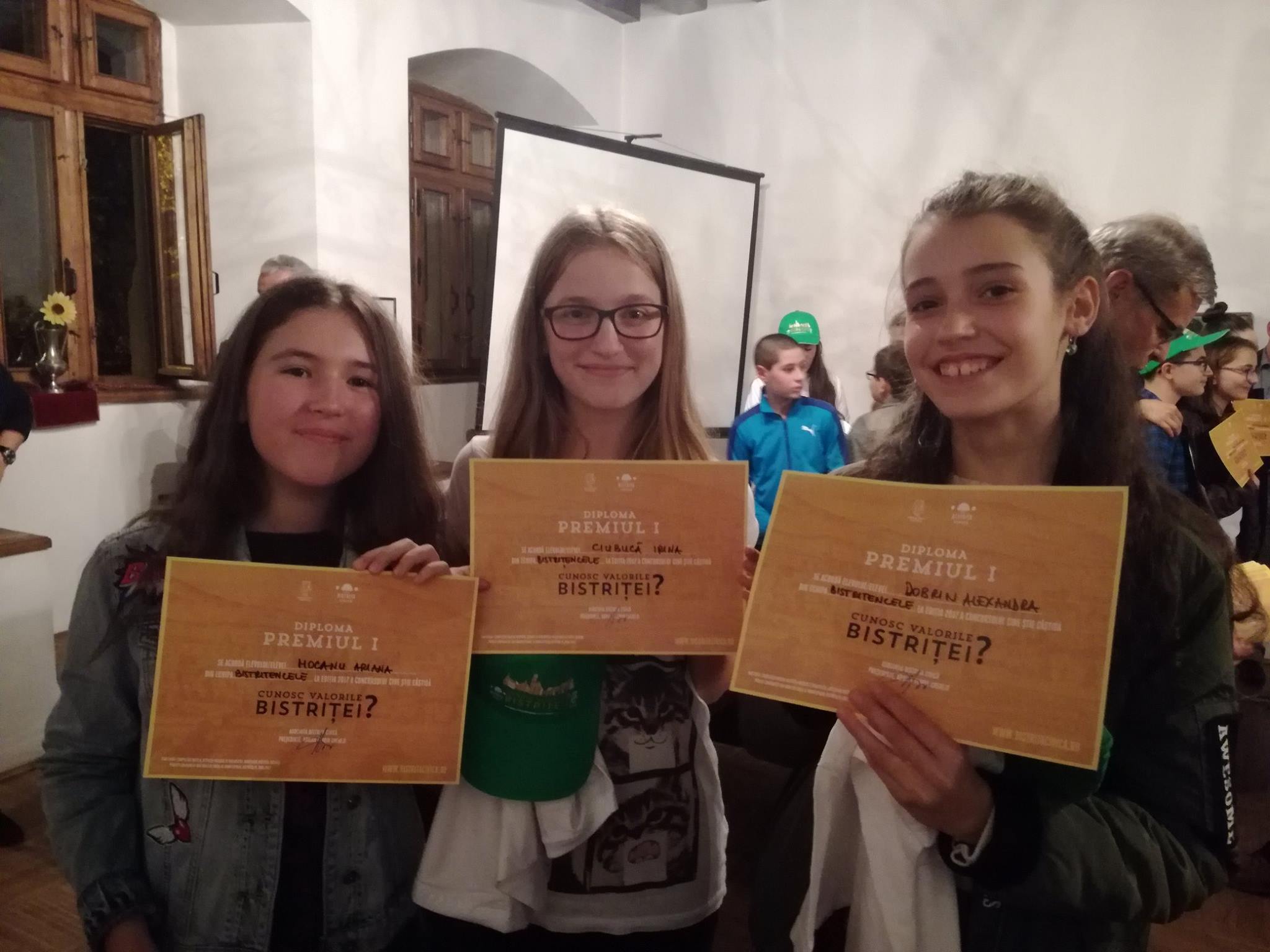 Locul I: Bistriţencele: Alexandra Dobrin, Irina Ciubucă, Ariana Mocanu de la Şcoala Gimnazială “Ştefan cel Mare” Bistriţa, prof. coordonator: Florina Codorean.