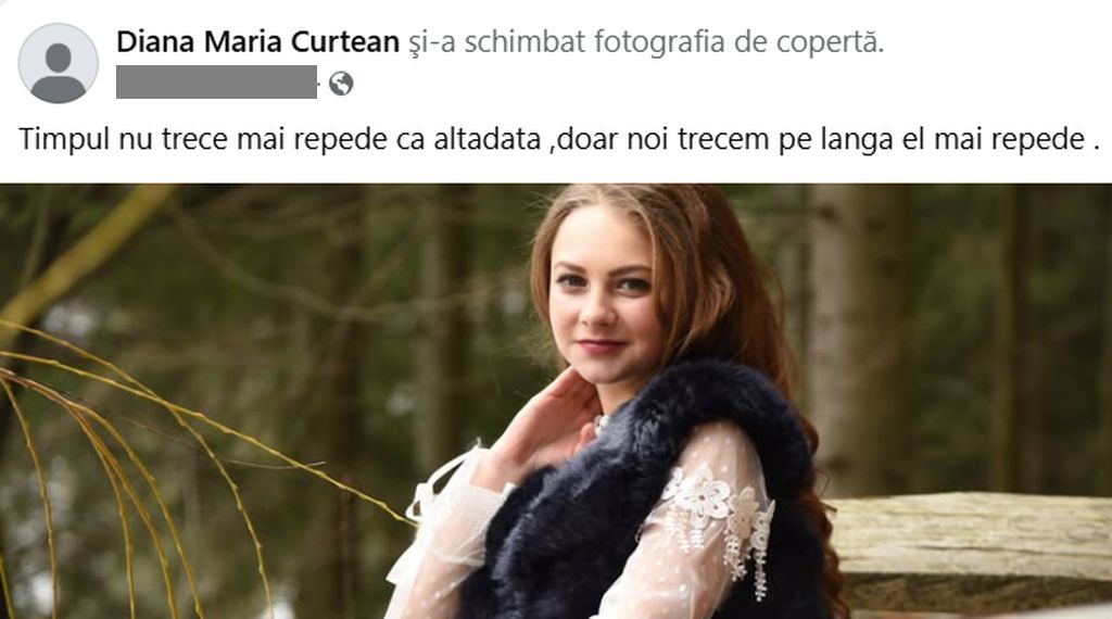 Într-un mesaj postat pe pagina ei de Facebook la o aniversare, fata a scris un mesaj care astăzi are un alt înțeles: ”Timpul nu trece mai repede ca altădată, doar noi trecem pe lângă el mai repede”.