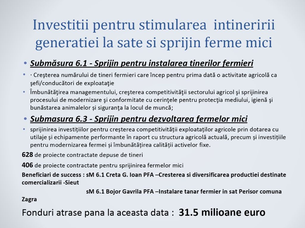 Tinerii fermieri și cei care au vrut să dezvolte fermele mici au primit, în total, 31,5 milioane de euro:
