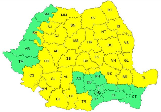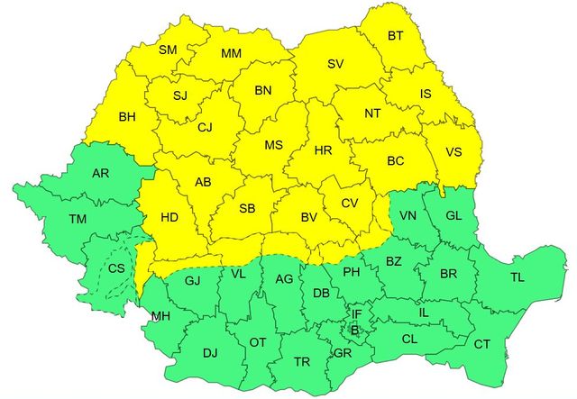 Administrația Națională de Meteorologie a emis avertizări de vreme rea, valabile inclusiv pentru județul Bistrița-Năsăud în perioada următoare.