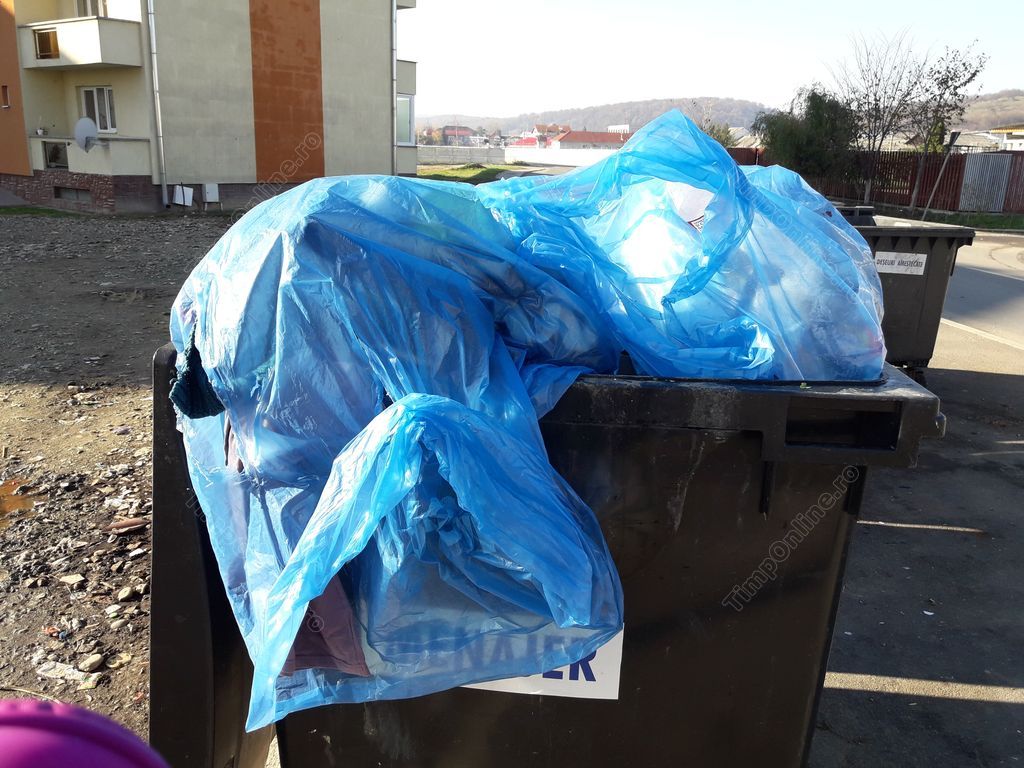 Sacii albaştri, distribuiţi gratuit de firma Supercom locuitorilor de la casele din Bistriţa pentru colectarea selectivă a gunoiului, au ajuns tot în tomberoanele de la blocuri. Oamenii nu au mai ştiut ce să facă cu hârtia şi PET-urile pe care nu a mai venit nimeni să le ridice nici după trei săptămâni, aşa că le-au aruncat pur şi simplu la primul container.
