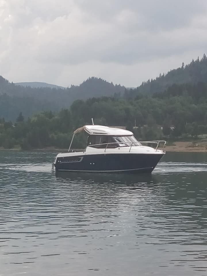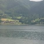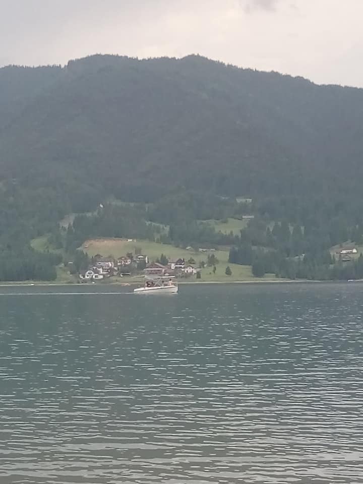 Pe lac plutesc diverse ambarcațiuni, așa cum reiese din alte fotografii: