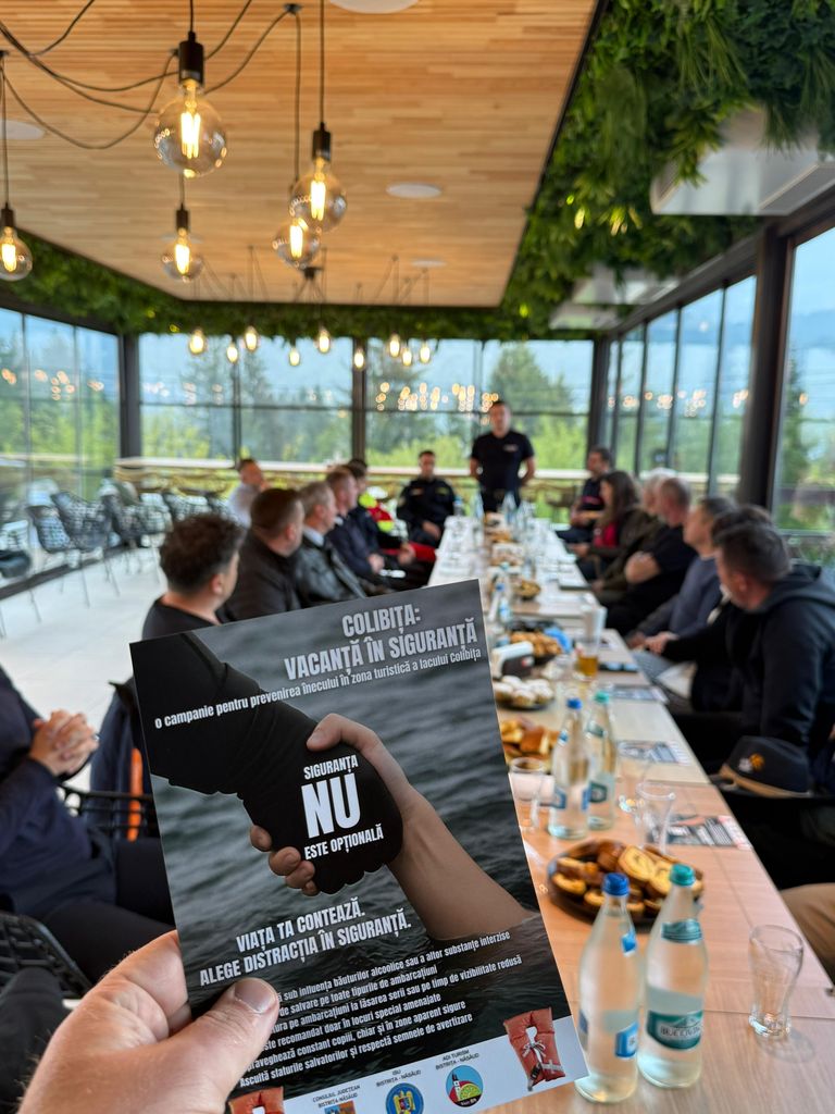 La inițiativa ISU Bistrița-Năsăud a fost organizată o întâlnire cu operatorii de turism din zona Colibița, în cadrul căreia au fost prezentate principalele direcții ale campaniei și capacitățile de intervenție ale unității în zonă. Reprezentanții unităților de cazare și agrement s-au raliat demersului, exprimându-și disponibilitatea de a susține mesajul campaniei atât prin afișarea materialelor informative în locațiile proprii, cât și prin promovarea acestora în social media. În cadrul întâlnirii au fost prezentate resursele de intervenție ale ISU în zona Colibița, timpii de răspuns, bilanțul recent al misiunilor și atribuțiile echipei de scafandri din cadrul inspectoratului. De asemenea, au fost discutate modalitățile prin care pot fi diseminate informații utile turiștilor, prin colaborarea cu personalul din pensiuni, hoteluri și alte unități de cazare.