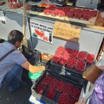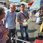 (FOTO) Lucrările de reparații pe care Primăria Bistrița le face în Piața Decebal în sectorul destinat agenților economici nu s-au încheiat, așa încât comercianții au fost mutați temporar în zona destinată producătorilor. Numărul mic de mese de aici a dus la apariția unor conflicte între ei și producători care nu au putut fi aplanate nici măcar de Administrația Piețelor. Într-un astfel de conflict a fost implicat marți Grigore Rânziș, membru al Asociației Produs în Bistrița-Năsăud, care a venit cu zmeură și mure de vânzare.
