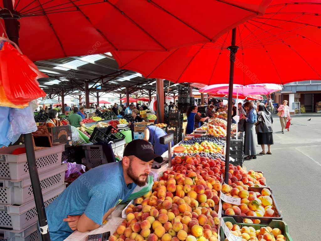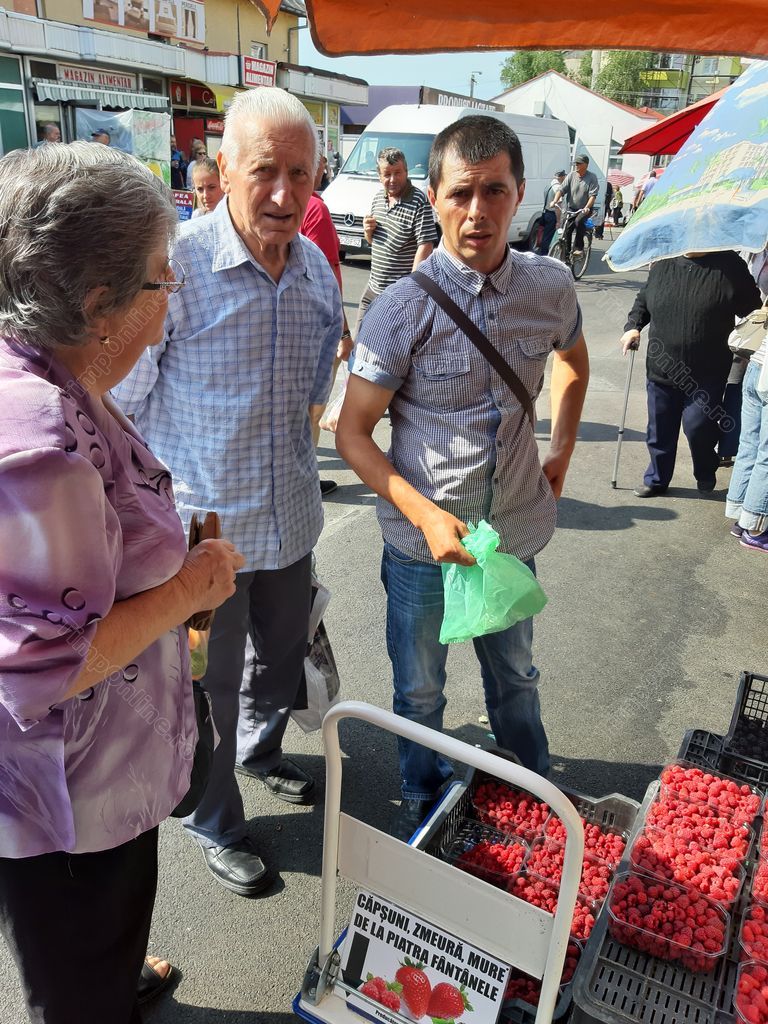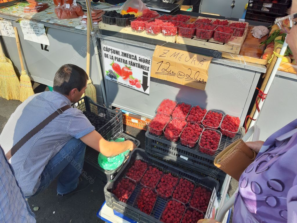 Comercianta revoltata NU elibereaza bon fiscal vreodata ( dar nici ceilalti comercianti ! )Am cumparat frecvent de la ea,câte 3-4 kg de fructe,eram deci un client fidel,până in ziua in care ,din 4 kg de piersici 1,5 kg erau atacate,stricate in partea din jos,pe care eu n-o vedeam ( pe masa toate aratau perfect,n-am intors eu fiecare fruct sa văd cum arată-de,eram client fidel ! -).De atunci,nu mai cumpăr de la ea.Iar cel care vinde murele si zmeura,nu cumpără de la altii,ci lasă unor comercianti care stau permanent in piață să-i vândă din produse si marți,fiind în piață,și-a luat de la acei comercianți inapoi ce n-au putut vinde ei.El are culturi de căpșuni,zmeură si mure la Piatra Fântânele-ce nu vinde proaspăt,transformă in dulcețuri și siropuri.