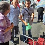 O altă comerciantă a intervenit și ea în discuție și spus că nu este de acord să vândă nimeni marfă pe jos:”Dacă vrei masă, du-te la administrație, plătește pe o lună. Dacă o plătește are masă, să nu stea nimeni cu marfa pe jos sau în altă parte. De-asta are piața mese ca să se vândă pe mese. Este igienic și sănătos să vinzi marfa de pe jos?”.
