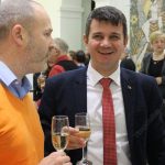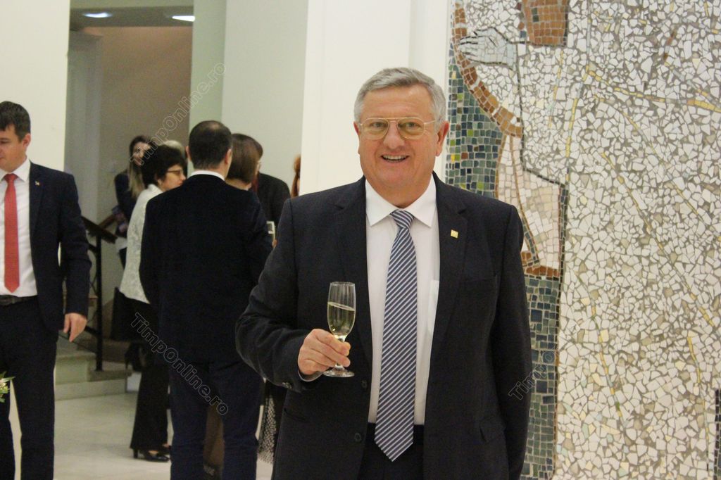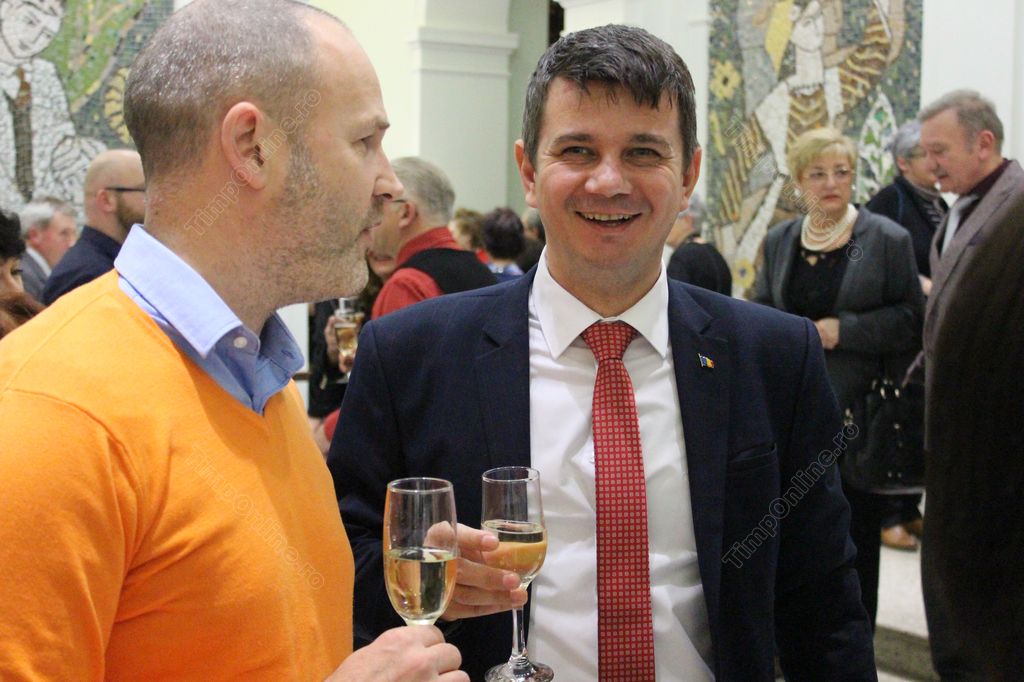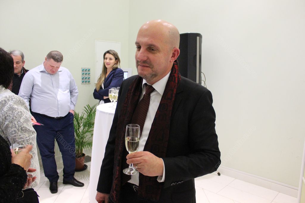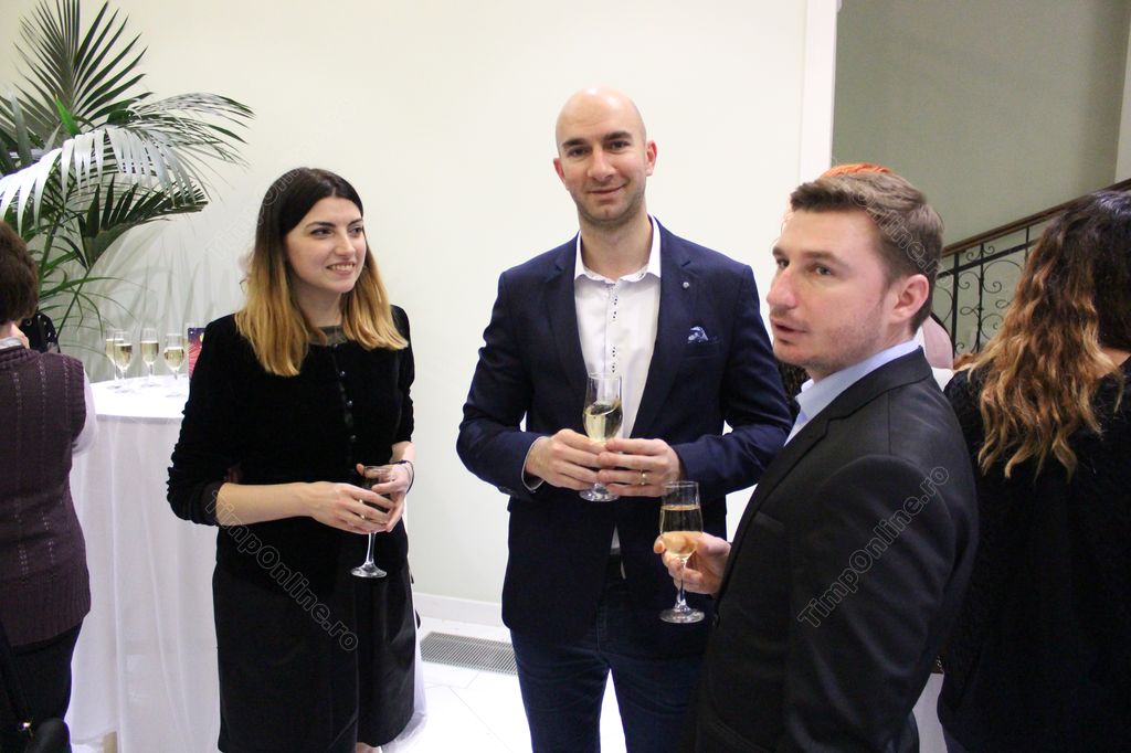 În pauză, cei prezenți au ciocnit o cupă de șampanie.