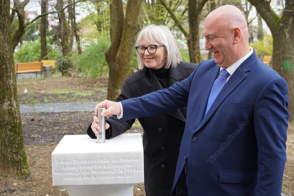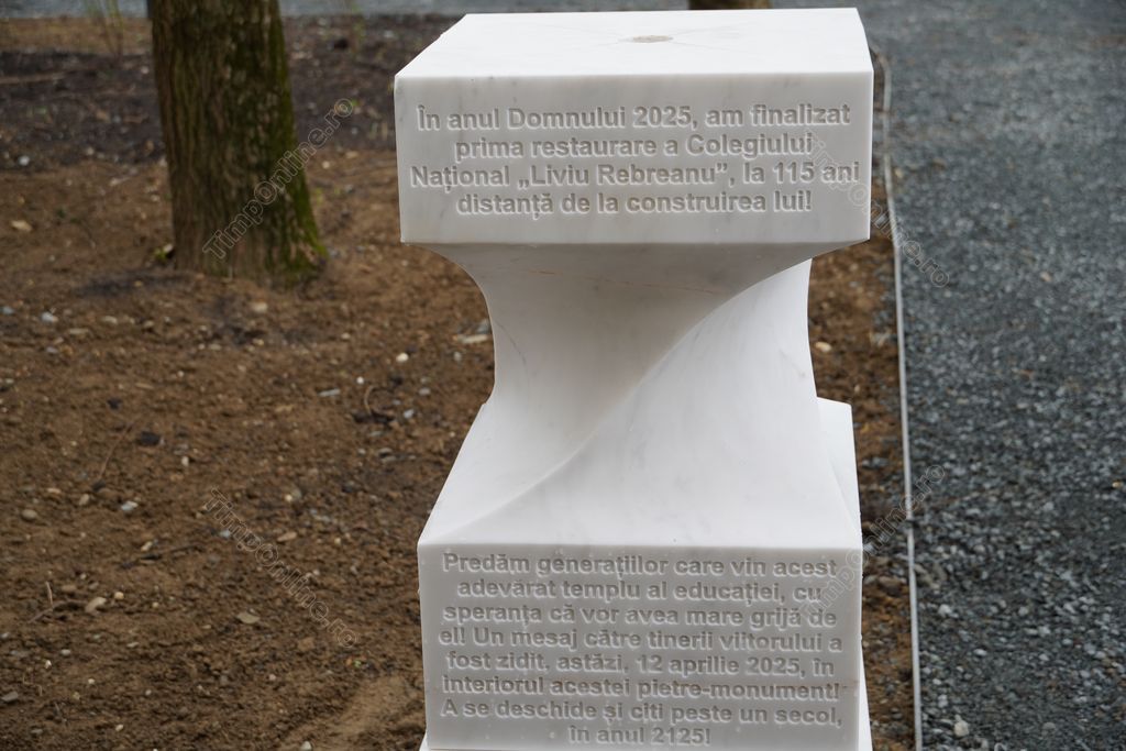 Ulterior, scrisoarea a fost zidită într-o capsulă a timpului pe care stă scris: ”În anul Domnului 2025, am finalizat prima restaurare a Colegiului Național Liviu Rebreanu la 115 ani de la construirea lui! Predăm generațiilor generațiilor care vin acest adevărat templu al educației, cu speranța că vor avea mare grijă de el! Un mesaj pentru tinerii viitorului a fost zidit astăzi, 12 aprilie 2025, în interiorul acestei pietre-monument. A se deschide și a se citi peste un secol, în anul 2125!”.