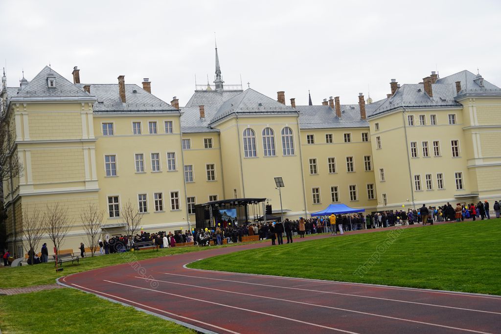 În curtea Colegiului, amenajată de Primăria Bistrița printr-un alt proiect conexat cu reabilitarea corpului A, s-a rostit o rugăciune ecumenică și discursuri din partea oficialităților participante.