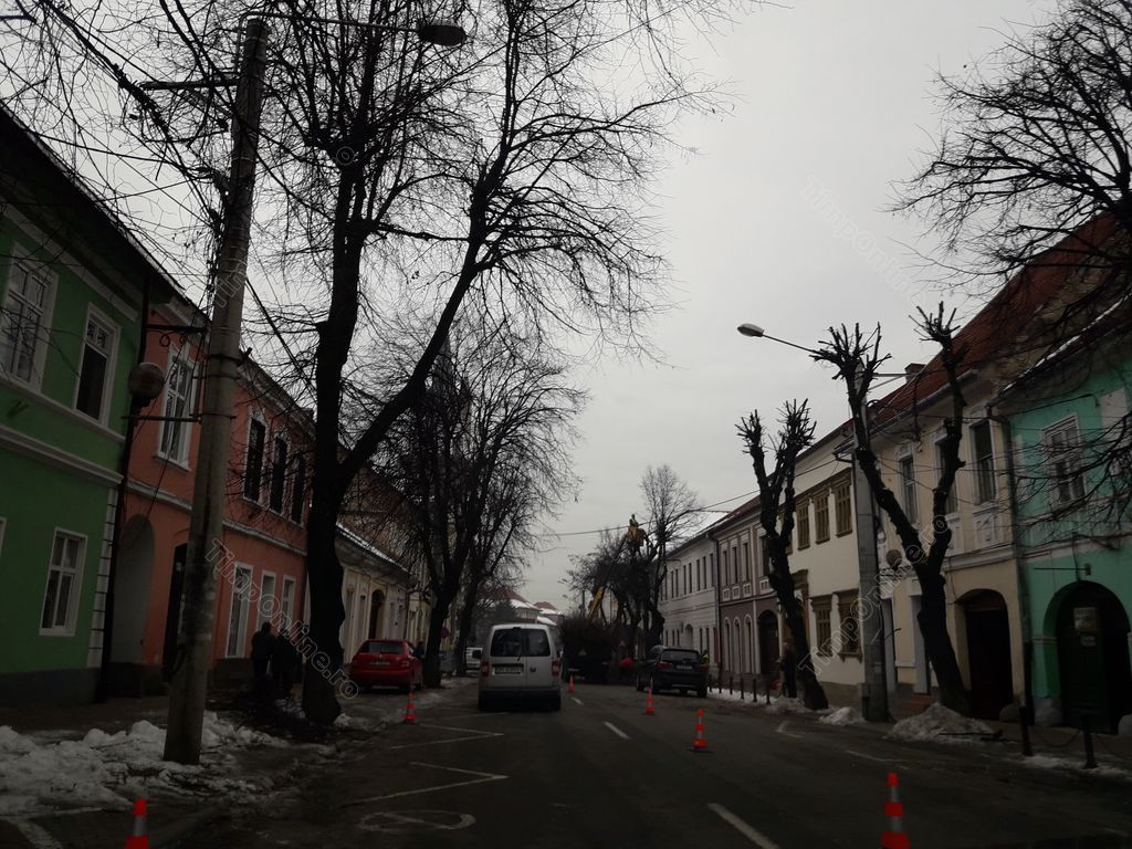 Traficul rutier pe strada Dornei din Bistriţa s-a desfăşurat, joi, cu dificultate, întrucât angajaţii Primăriei Bistriţa au început toaletarea arborilor de pe această stradă. Deja, pe partea dreaptă a străzii, au fost tăiate crengile tuturor copacilor, urmând ca acţiunea să continue şi pe partea stângă. Cu această ocazie sunt luate din copaci şi ghirlandele cu care a fost împodobit oraşul de sărbători.