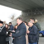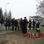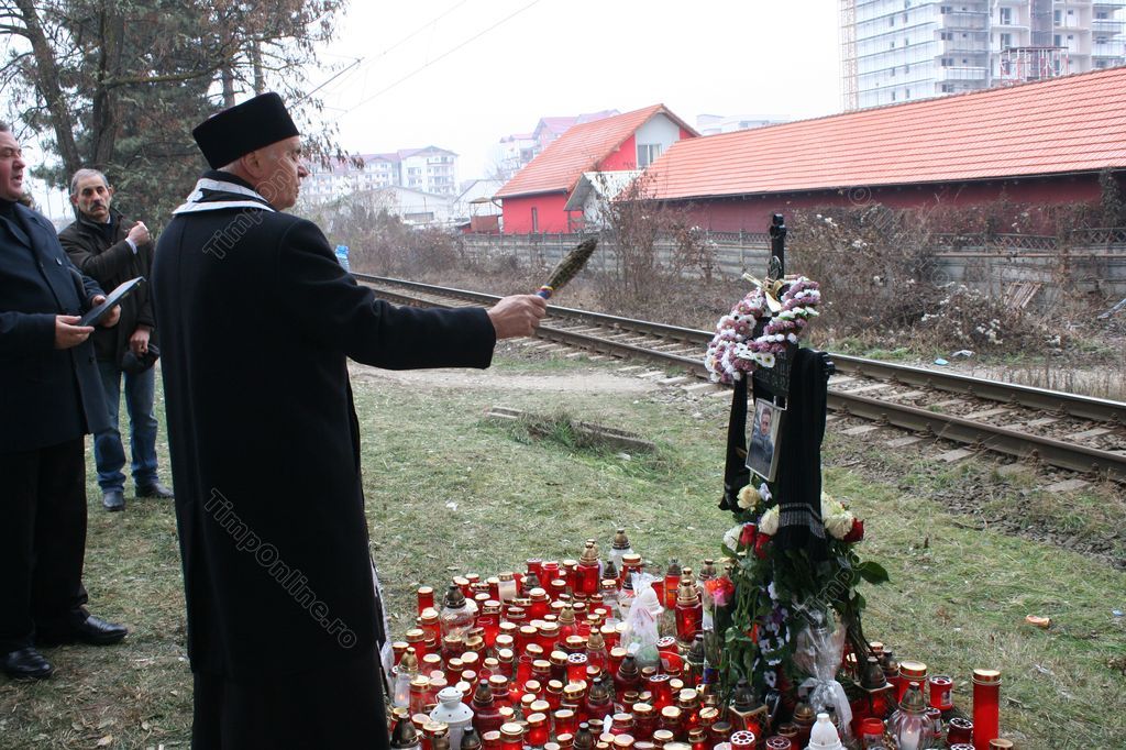Preotul Grigore Conea, împreună cu un cântăreţ de la biserică, a oficiat o slujbă scurtă de iertarea păcatelor celui mort, după care a sfinţit crucea.
