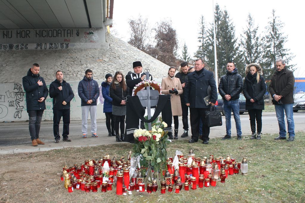 O cruce neagră din metal, ridicată în locul unde şi-a pierdut viaţa inginerul electronist Andrei Pintican, a fost sfinţită vineri de preotul Grigore Conea de la Biserica “Sfânta Ana” din Bistriţa. La slujbă au asistat membrii familiei tânărului care a murit în teribilul accident, dar şi câţiva prieteni.