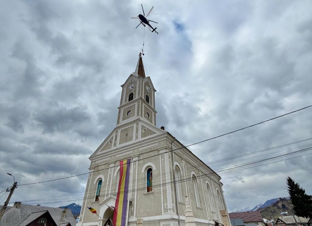 Pe Biserica ”Sfântul Nicolae” din Sângeorz-Băi a fost montată o cruce nouă cu ajutorul unui elicopter care a reușit să aducă simbolul sfânt al credinței în locul potrivit după trei încercări de survolare a zonei.