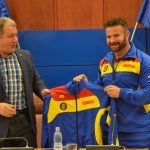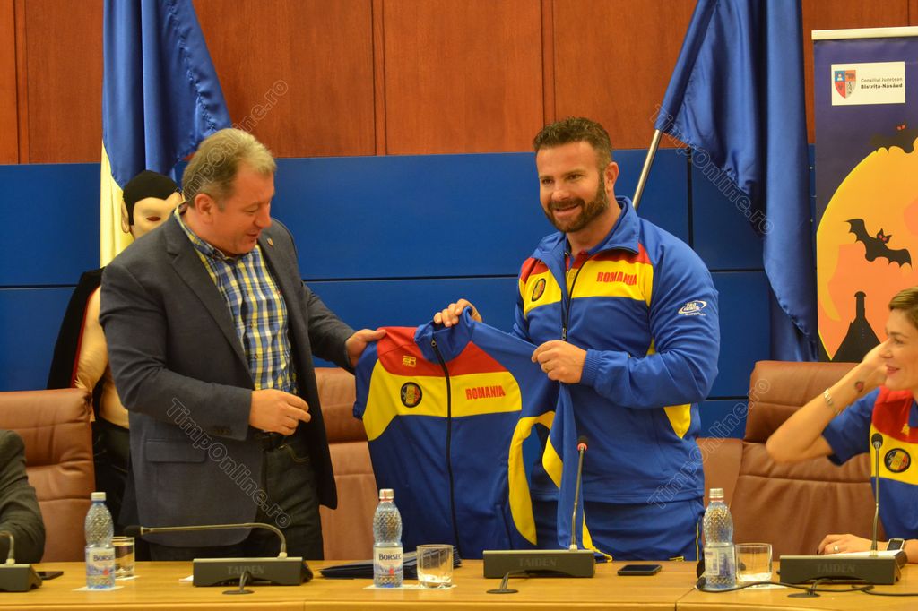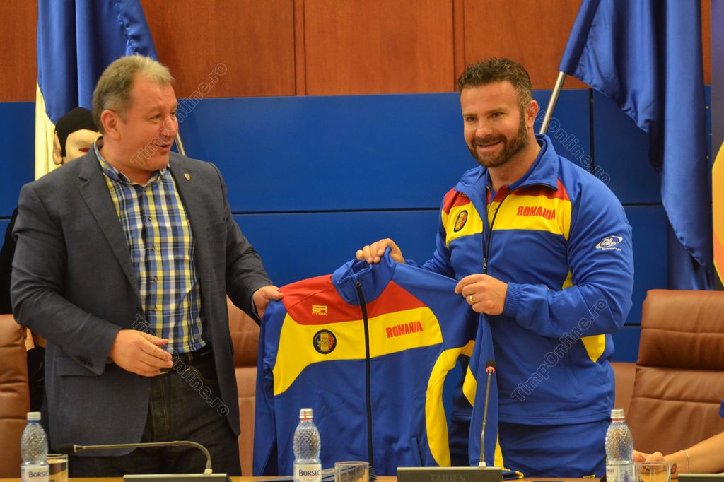 Gabriel Toncean i-a oferit președintelui CJ Radu Moldovan un echipament oficial al lotului național. ”Îl fac în mod oficial membru al Federației. Deci de mâine la sală!”, a spus Toncean.
