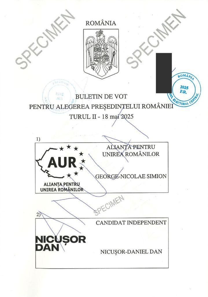 Specimenul buletinului de vot pentru turul 2 de scrutin arată astfel: