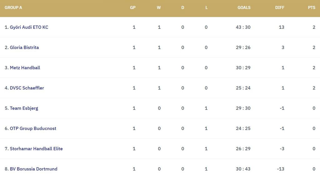 Celelalte meciuri din etapa cu nr. 2 a Grupei A: Metz – Dortmund (sâmbătă ora 19.00), Gyor – Esbjerg (sâmbătă ora 19.00), Storhamar – Podgorica (duminică ora 17.00).