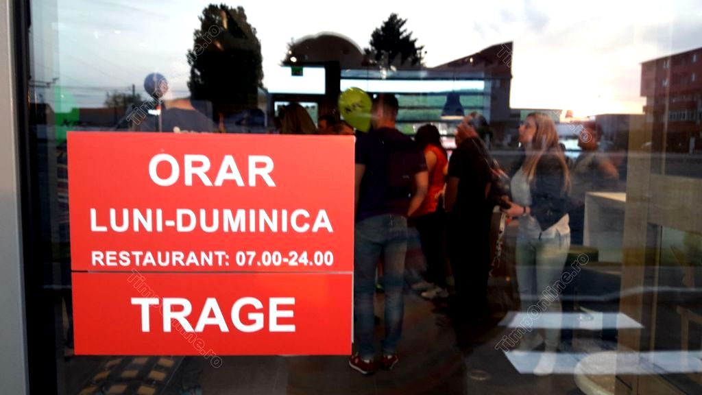 Restaurantul este deschis zilnic de luni până duminică, între orele 7.00 – 24.00. La Drive Thru se poate comanda 24 din 24 (Vedeți foto).