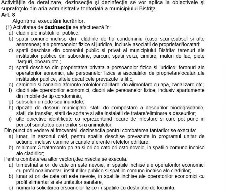 Primăria Bistriţa anunţă organizarea unei dezbateri publice pe proiectul de hotărâre privind darea în administrare, prin gestiune directă, a activităţii de deratizare, dezinsecţie şi dezinfecţie pe raza municipiului către Direcţia Servicii Publice Bistriţa.