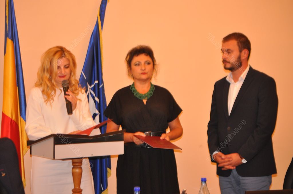 În deschiderea ședinței de joi, ea a depus jurământul și a fost felicitată pe rând de primarul Ovidiu Crețu, de viceprimarul Cristian Niculae și de liderul de grup al PNL, Sorin Hangan, care i-a oferit și un buchet de flori.